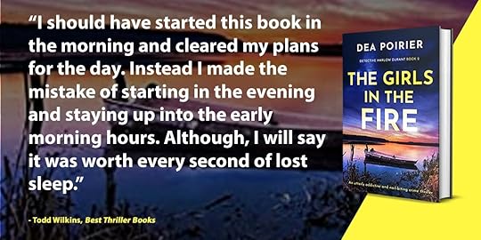 The Girls in the Fire is the type of story that will have you blazing through the pages. Dea Poirier unfolds events in a slow burn, keeping the heat turned up on Detective Harlow Durant as she tries to stay hot on the trail of a murderer.