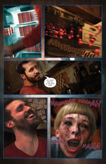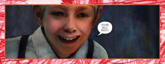 OK, the big thing that needs to be said is that in the right hands this book would have worked without any spooky, here's-what-the-film-storyboard-looks-like-on-a-budget-of-two-bucks-fifty visuals. It's quite the interesting little, Midwich Daniel/The Omen Cuckoo hybrid, where a bloke is at the store getting some trashy sweets for his girl, who he's chatting to over wireless earbuds – until a bratty kid starts screeching the place down. Outside, he shortly sees the kid's mother walk under a removals van, and suddenly his girl thinks it's months since they quit dating and is with someone else, and the bratty kid says he's our man's child, fostered by him and a previously non-existent wife. Oh, and some otherworldly characters from a different plane of existence start cropping up, too.