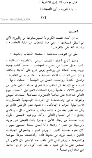 أحبُّ المقاطع إليّ من الكتاب تلك التي كان فيها مُريد ♥️ لفتني أيضًا تزامن وفاة أم كلثوم مع أحداثٍ ثورية في مصر، فكان هناك تحايلٌ في إعلان موتها ثم لم يُذَع بعد جنازتها إلا أغانيها الغرامية وأخفوا "مِصرُ التي في خاطري وفي فمي.." ومثلها من أغانٍ وطنيةٍ وثوريّة، خوفًا من أن تؤجج نار الشعب أكثر. عمومًا، أعتقد أني لم أعرف رضوى بعد وهذه الرحلةُ لم تكفِ، أتطلع للتعرف على مزيد من أعمالها هي ومريد.