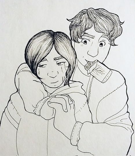 These first pictures were drawn by Libra Illustrations and are of the two main couples. I'm so in awe of how great these are that I had to share! (Go check out her website to see more of her artwork, too!)