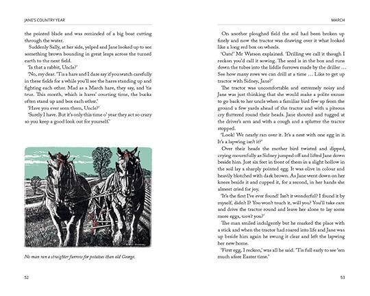 This is the story of Jane, a London girl around the age of 10, who is sent to live with relatives for a year in the country after a debilitating illness. Having never experienced the clean air and atmosphere of the country, her eyes are opened to all that life on a farm had to offer. While there, she made friends with farmhands and neighbors alike. Her friends taught her about the flora and fauna around her. I hardly read a page or more before I was introduced to a new to me plant or animal. The book is set up in chronological order and the reader is taken on a journey through the seasons with her. While this book has a subtle plot, it really reads more like a naturalist's diary. This is a charming view into a postwar rural England. The illustrations are lovely.