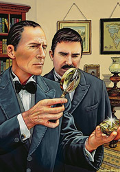Also in the room is a wax effigy of Holmes, seated in a chair near the window. Holmes soon emerges and explains that the dummy is a decoy, much the same as he used in “The Adventure of the Empty House”. Holmes, it would seem, is fully expecting an attempt on his life that evening, and even has Watson write down the murderer’s name and address, just in case the attempt is successful. The jewel thief is Count Negretto Sylvius of Moorside Gardens.