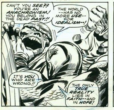 This was a gift and I'm trying to get a feel for the real silver-age comics, but this is bad. I know Stan Lee and Jack Kirby are comic legends. However, having your villain say how nigh-inviciable he is on EVERY page is not characterization. Kirby seems like he has to get a shot of one of his futuristic weapons or circuitry boards in every issue or he'll be fired.