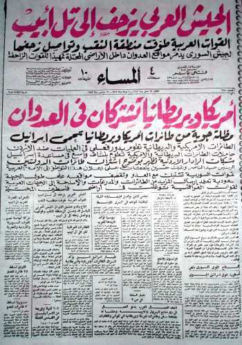 "في صباح اليوم التالي كانت الأمور هادئة. أين الحرب؟.. لا شئ إلا بعض الأغاني والشعارات والبيانات. من صوت إسرائيل كان ليفي أشكول يقول لجنوده: معكم السلاح ولديكم القيادة المؤهلة جيدًا.. لقد تدربتم واستوعبتم دوركم وما عليكم إلا أن تدافعوا عن أنفسكم وتنتصروا لتعيشوا. ومن القاهرة كان أحمد سعيد يقول: كلها دقائق ونصل تل أبيب.. سنشنق موشي ديان على أقرب شجرة.. ونصل تل أبيب.. اقتلوهم.. اذبحوهم.. إنه يوم العروبة.. الجيش الأردني في المعركة.. الجيش السوري في المعركة.. الجيش الكويتي في المعركة.. الجيش.. الجيش."