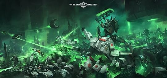 The approach to killer robot skeletons as empathetic creatures with feelings is not a standard warhammer approach, but I liked it. Even as sympathetic characters, the reader still gets the sense of their thirst for perpetual greatness, their arrogance, their desire for dominance over "lesser" lifeforms, their rigidity in the sacred and profane. But all these things are also qualities of the Imperium of Mankind, which is a very nice touch to bring the alien back close to home. I kind of wish there had been some more investigations into scale and timeline: the deterioration due to those time scales is evident, but it didn't particularly effect anyone's patience or outlook or perspective in an explicit manner. They resemble humans with long memories more than the fundamentally changed beings they would be from having such a long "life". But that's a minor quibble for a book that otherwise goes from strength to strength.