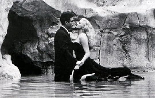 Actors Marcelo Mastroianni and Anita Ekberg in the famous Trevi Fountain scene from La Dolce Vita (1960) by dir. Frederico Fellini. Yu-Jin's reenactment of the scene for a film studies class becomes a key plot element of 'When We Fell Apart.' Image sourced from the Toronto Star.