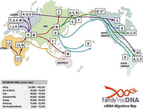 المعلومات المخزنة في كل من مكتباتنا الوراثية فريدة من نوعها ، لكنها موحدة بشكل مثير للاهتمام. إن التباين الوراثي للأفارقة في الوقت الحاضر ضخم مقارنة بالغير الأفارقة ، مما يشير إلى أن الإنسان العاقل أمضى الكثير من تاريخه التطوري في القارة الأفريقية، تحكي جيناتنا تلك القصة القديمة للهجرة ، من حركة الكلت the Celts في أوروبا ، إلى هجرات البولينيزيين عبر المحيط الهادئ.