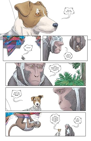 The story is so basic: it’s the animals wanting to return home, or at least the monkeys go along with it because Laika wants to and, conveniently, Laika’s owner is just about still alive. Six issues for that? Yeesh.