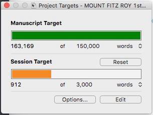 Wednesday, December 27, 2017: I am chugging along on MOUNT FITZ ROY. We're at 115,000 words, and I'd say that we're about halfway done. Hopefully. That's about 350 paperback pages, so if I'm halfway done it could be a soul-crushing 700-page tome. Too damn big. Bigger than Earthcore, the first book in the duology.