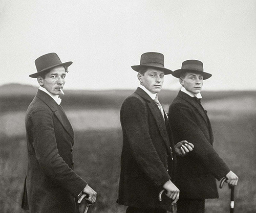 August Sander: Tre contadini che vanno a ballare. Fazil ha una copia incorniciata di questa fotografia, unica forma di arredo della sua stanza.