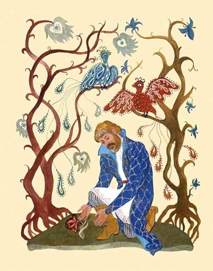 A variation of the "Beauty and the Beast" fairy tale that is quite similar to the version by Madame de Beaumont that it's easy to see why some would believe this is a Russified version of her tale, although apparently Sergei Aksakov didn't read Beaumont until after he wrote his, or so he claimed. I can believe he didn't read it before writing his version, but I have a hard time believing the version he grew up hearing as a child didn't come from France without him being aware of it, because Villeneuve's and Beaumont's versions already existed so it's possible the oral tale he heard as a child from his housekeeper, Pelageya, that he then transformed into "The Scarlet Flower" might've been inspired by or influenced by Villeneuve or Beaumont. That would be my guess, anyway, because this tale is just too similar to not think it didn't come from the French. For reference, Villeneuve's fairy tale was published in 1740, Beaumont's summed up version in 1756, and Aksakov's in 1858, a full century later, so I definitely do think there's a strong case to suspect it came from the French.