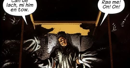 Comics in the 21st century... I just can't go back, though the appreciation for the building blocks of today's level of sophistication is there. One thing I don't miss in comics is the characters narrating their thought and subsequent actions. IT's like "OMG that creature recoils from lasers so I'm leaping towards that dropped blaster and grabbing it, skidding on my side as the creature tries to separate my head from my torso and blah blah." The beginning of this book was rampant with this, so that was a big turn off. I have to admit that Sean Philips totally kicked ass on this one with a style that has been the closest to that of the original series illustrator Jae Lee. I'll go further and say that his backgrounds might be of a higher quality. Peter David has cottoned quite well to the voice established by Stephen King in Wizard and Glass and is knocking the narration out of the ballpark.