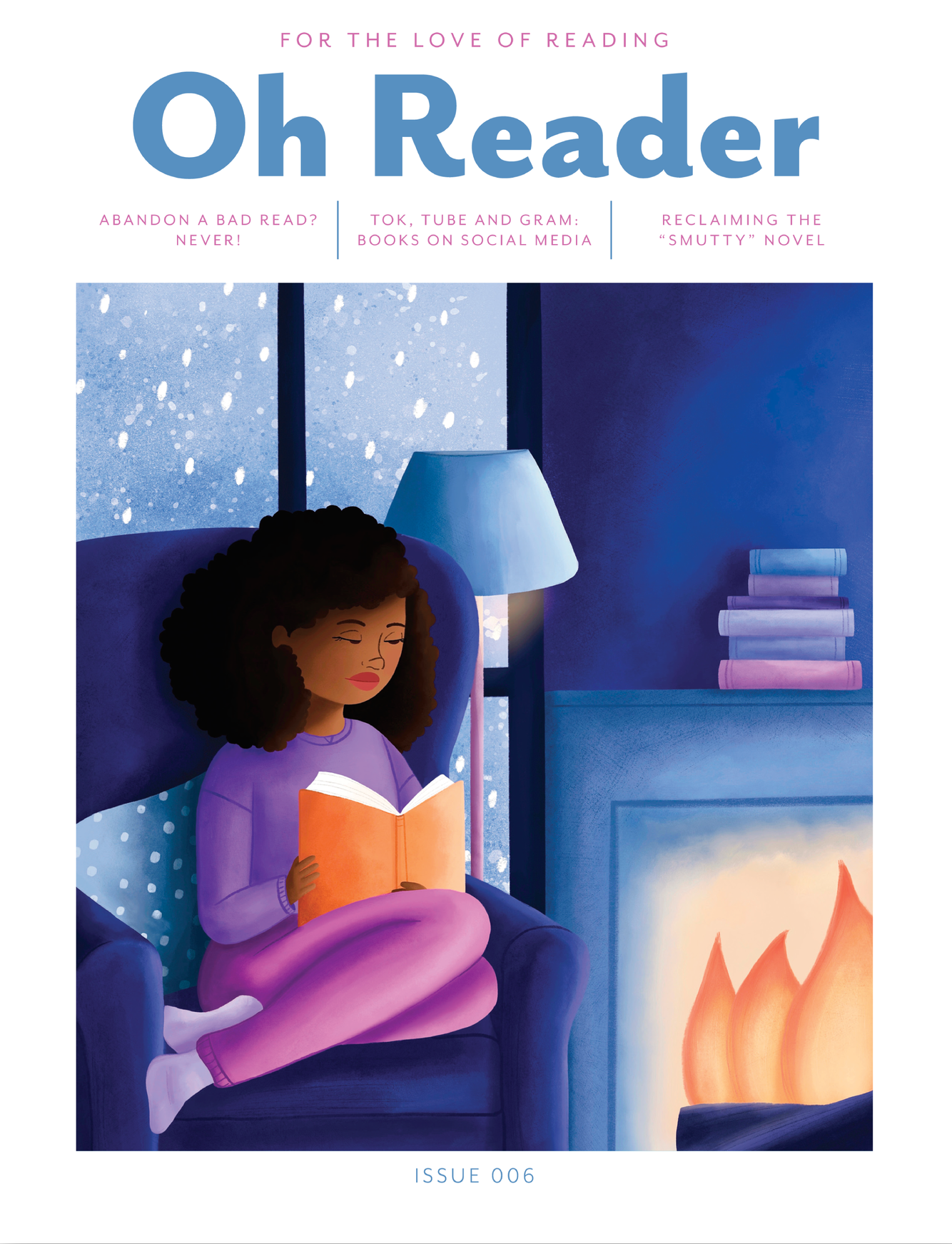I could just stare at the cover all day long. There’s a page with a cabin in the snow I found myself turning to after each article. I savor each page. It was an absolutely perfect evening, sipping my tea, snacking on my biscotti, sitting by the fire with my pug in my lap, and reading about books and those who love to read. Pure heaven.