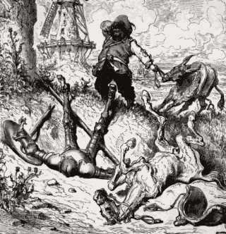 But while with other works we can also think of other major illustrators who vie with Doré for stamping on our minds the visual equivalent to text-- for we also have, in the case of Dante Botticelli’s, Blake’s and Dalí’s astounding series--with Cervantes Doré has imprinted the definite image. And even if he has somewhat falsified Quijote’s looks, since he continues to hat the chivalric hero with the barber’s basin in the Second part of the book, when Quijote no longer wore it, it does not really matter. For us now, thanks to Doré, Quijote always wore his back.
