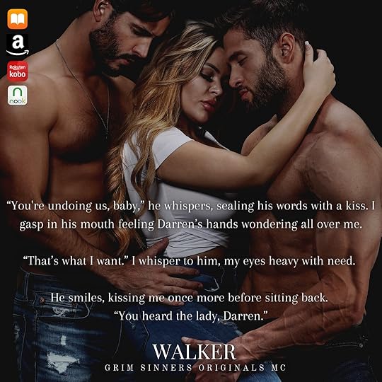 Fourth book in the Grim Sinners MC Originals. Summer is a therapist. All she does is work and stay t home. One night she goes out to let loose. Two things happened. Her past comes running. She meets not one but two amazing men that change the course of her life. Walker and Darren come with so much love and protection. The only thing that summer can do. Is hold on. This story comes together, it’s epic.