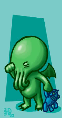On page 53 there is a remarkable description of how Ophelia smuggled in a plush baby Cthulu into the coffin to denote a monster of the deep moat, and astoundingly enough there are the fetid scrag ends of that toy in the ground, next to the bones of the female servant. Ophelia notes that "me and Hammy Baby laughed down three bottles of red at the thought of that inspired joke."