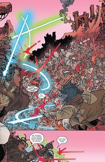 But I decided to pick this series up because it sounded really fun and I was excited that they decided to do a bunch of stories set in the High Republic Era. I want more Jedi stories not the depressing shit that comes later down the timeline. I'm glad I decided to read this, while it didn't shape up to be anything amazing it was very fun! Something that has been lacking in a lot of the Star Wars things I've tried out. Also, the art is STUNNING.