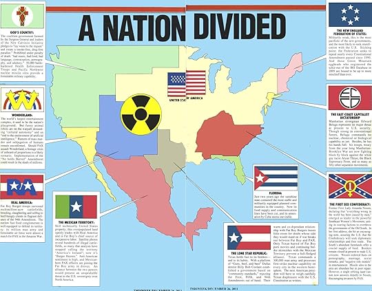 The Divided States of America map in the last chapter(Death & Taxes),left me with a nervous tickle. This story may settle best in readers with an unproscribed sense of American history. A twisted sense of humor may be helpful too. Sometimes the current realities of our surroundings need satire to avoid insanity.
