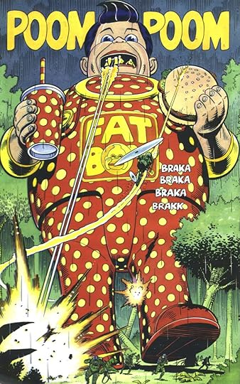 I'm seeing a lot of commentors give the impression that this is whip-smart social commentary. Maybe it is, but if so, it's still a comic where a huge robotic burger mascot is used as a war machine. Pretty good