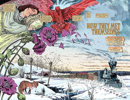 The second larger arc is A Game for You. This is one that walks the line of fairy tale and darker subtext. I felt like it went a long way to discuss imagination and the death or letting go of childhood things. I liked his comments on boy's vs. girl's fantasy. Wasn't bad, just didn't appeal to me. This story is also very pro LGBQT; praise to Gaiman for doing that decades ago.