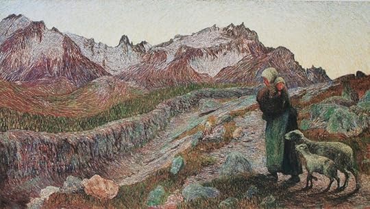 In realtà tutte queste vite che si intrecciano sono ricostruite dai racconti che la vedova di Carlo, ormai anziana, fa al nipote, che porta lo stesso nome del nonno e che, affascinato da un quadro appeso nella casa di montagna, si fa raccontare tutta la storia, sia dei suoi antenati che di Segantini, rimanendo più che impressionato dalla sua personalità e dalle sue opere. Forse la narrazione per come viene portata avanti, cambiando spesso soggetto, tempo ed ambientazione, risulta a tratti confusionaria, soprattutto se si ascolta l'audiolibro piuttosto che leggere. A parte questa nota però ho trovato molto bella la storia, molto interessante la scoperta di un artista a me totalmente sconosciuto. Vissuto nella seconda metà del XIX secolo, tra l'Italia e la Svizzera fu un autore popolare già in vita, infatti avrebbe dovuto partecipare all'Esposizione Universale Di Parigi del 1900, se una peritonite non se lo fosse portato via un anno prima. I luoghi che il pittore frequentava e dai quali traeva l'ispirazione per le sue opere sono oggi un percorso suddiviso in 12 tappe, ma soprattutto sono l'ambientazione principale di questo romanzo.