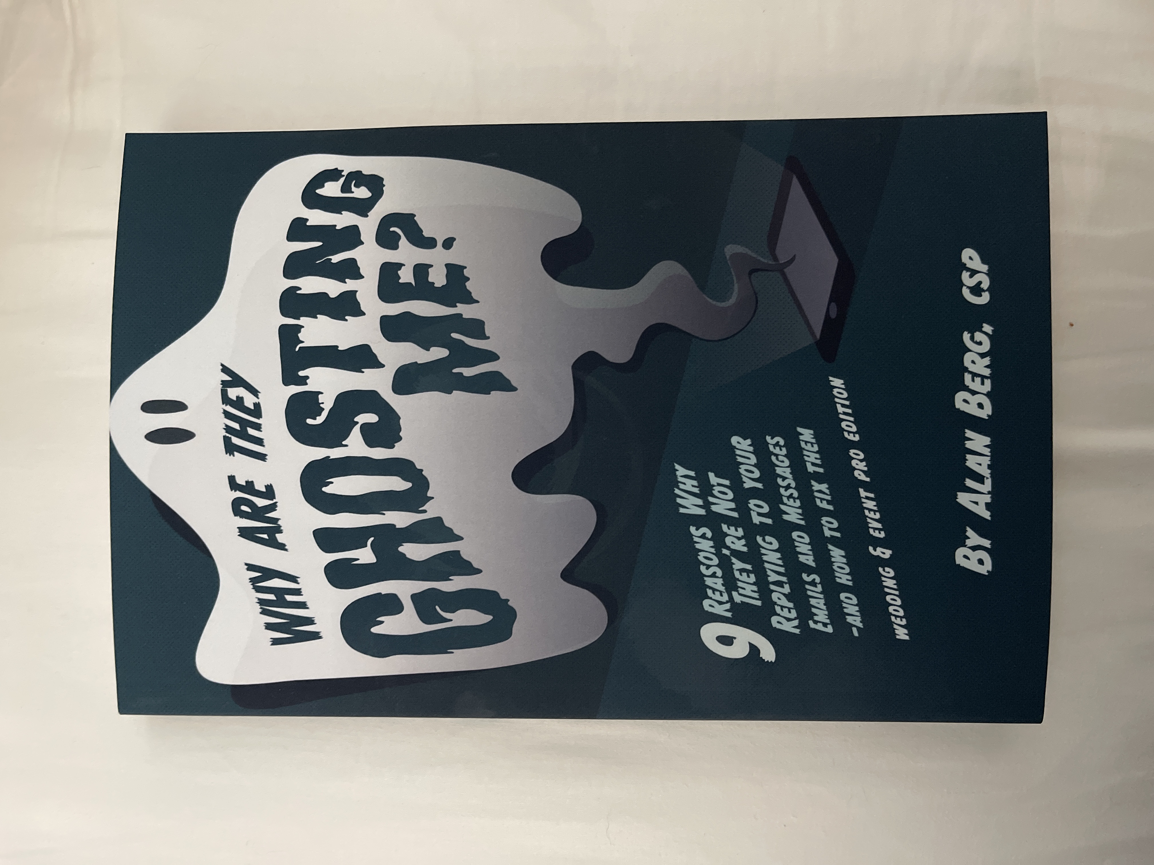 Why Are They Ghosting Me? - Wedding & Event Pros Edition 9 Reasons Why They're Not Replying To Your Emails and Messages - and how to fix them What is ghosting? It's when you get an inquiry or message and you reply and then never hear back. That's ghosting and it's frustrating. Whether it was after your first reply or after you had some back and forth digital communication (email, messaging, texting, etc.) many conversations stop with no explanation. In this book Alan will take you through 9 Reasons Why They're Not Replying To Your Emails and Messages - and how to fix them. This book is the sequel to Alan's popular "Why Don't They Call Me?", which helped you with 8 tips for converting wedding and event inquiries into sales. . While written for the wedding and event industry, these tips can help almost any business, as ghosting is a universal frustration. "Why are they ghosting me?" includes a recap of the 8 tips from "Why Don't They Call Me?" and ideas for how to handle pricing questions from Alan's most popular "Shut Up and Sell More Weddings & Events". Whether you've read those books, or not, "Why are they ghosting me?" will help you reduce the ghosting and get you more replies from prospects and current customers. . What do people say about Alan's books?