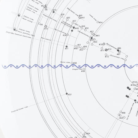 Christoph Fink (Ghent, °1963) has been working on his Atlas of Movements for many years, exploring the borders of the human body and its interaction with its surroundings. This takes the form of detailed accounts of his travels, photographs, sound recordings, etc. which the artist then turns into experimental exhibitions such as space-filling cartographic and acoustic constructions consisting of drawings, diagrams, tables and layers of sound. Fink thus presents an alternative world view in which he calls into question the relationship between the various elements around us.