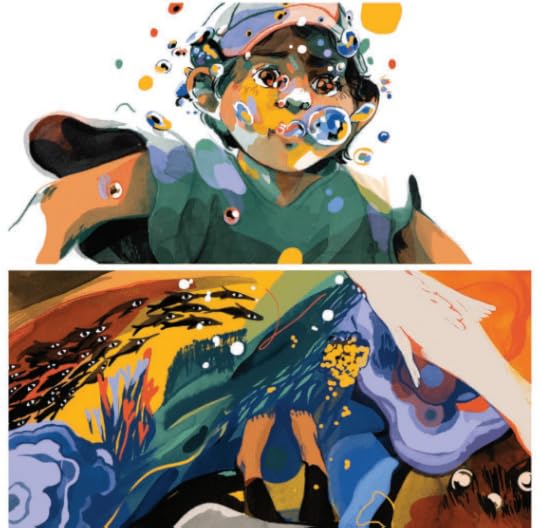 The art is OUTSTANDING!! Especially all of the water (lakes, bubbles, tears, etc.) illustrations. This looks like the kind of graphic novel that would be delightful to make (mostly imaginative scenes with color filling the pages rather than word bubbles).
