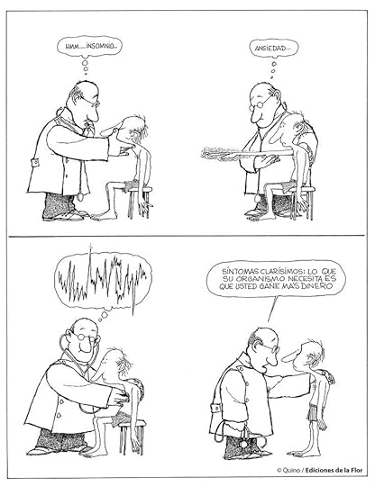 Shows in a very funny and ironical way everything related to doctors, hospitals, deseases, health and social problems. Only Quino would be able to present such a theme in a way that you're able to identify yourself in a humouristic way mixed with great social critics. A major piece of work :)