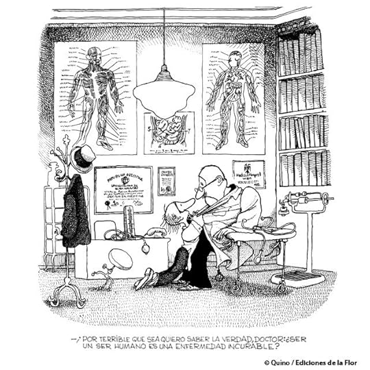This is delightful. My friend Dr. Hsu recommended this book of Doctor cartoons. Quino, who is Argentinian, is a great artist, and the style is a la Sergio Aragones, with many of the cartoons without words. Note: What words there are, are in Spanish. Only thing wrong with this was that it was too short and I would have liked the book to be twice as thick. Happy to add this to my collection of comic strips and cartoon books. This is a great gift for anyone who is a med student or doctor, if they have an excellent sense of humour.