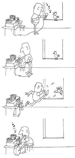 Colección de algunos de los cartones más tempranos de Quino. El humor y los trazos son sencillos. Los temas: La religión, verdugos, aves, música, presos con grilletes, militares, estatuas, carrozas fúnebres, deportes, cazadores, y unos pocos cartones de crítica social.