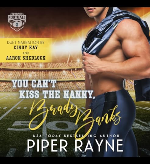 𝐘𝐨𝐮 𝐂𝐚𝐧'𝐭 𝐊𝐢𝐬𝐬 𝐭𝐡𝐞 𝐍𝐚𝐧𝐧𝐲, 𝐁𝐫𝐚𝐝𝐲 𝐁𝐚𝐧𝐤𝐬, the second book in the Kingsmen Football Stars series by Piper Rayne is Brady and Violet's story.