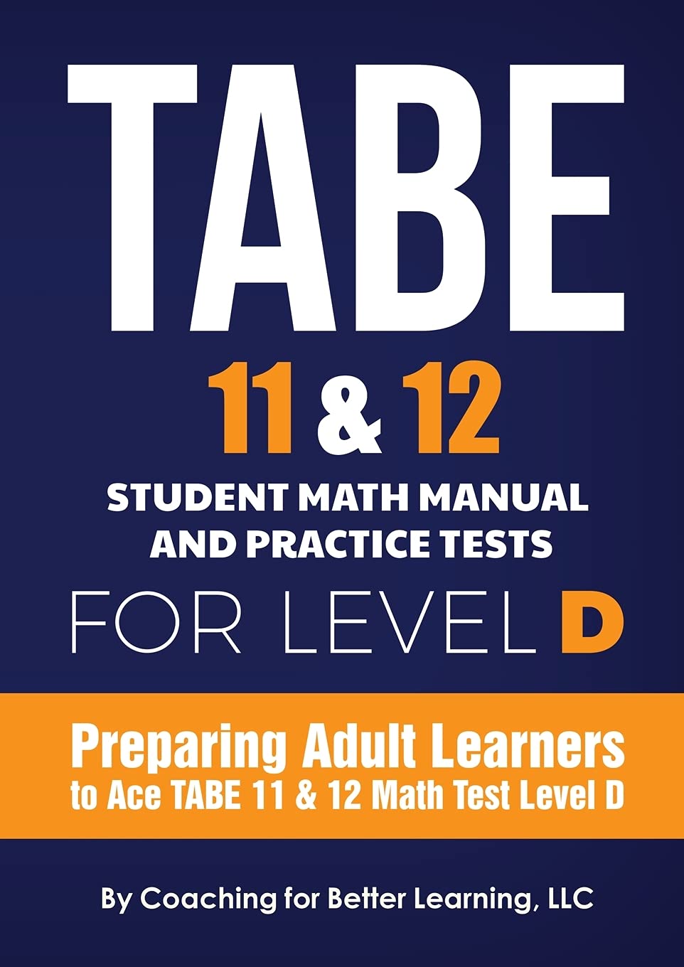TABE 11 & 12 Math Student Book Level D This student manual is designed to successfully p repare adult students for the TABE 11 & 12 Level D math test and vocational training admission tests. In other words, this manual presents exercises that help adult education programs, Workforce programs, and their adult students meet the Workforce Innovation and Opportunity Act (WIOA) math expectations. It offers six (6) sections that cover all the TABE 11 & 12 and Math CCR standards and content for level D such ✓1) the number system ✓2) expressions and equations, ✓3) ratios and proportional relationships, ✓4) functions, ✓5) geometry, ✓and 6) statistics and probability . The book also offers step-by-step instruction, plus practice exercises and answer keys, questions and tasks that encourage pair work and group work, and classroom discussion on math ideas and concepts. It presents 2 practice tests that mimic the TABE 11 & 12 level D test format and rigor, plus answer keys. Specifically, this manual invites math teachers to provide learners with space and time to experiment with math concepts and ideas and to get deeper in their learning process. For example, the tasks presented in this book aim to make learners think more deeply about math and therefore improve their mathematical thinking skills , provide learners with hands-on tasks relevant to their situation, help learners connect their math learning with the real world, create opportunities for learners to read about, write about, and discuss math ideas and concepts.