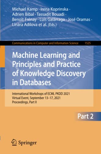 This two-volume set constitutes the refereed proceedings of the workshops which complemented the 21th Joint European Conference on Machine Learning and Knowledge Discovery in Databases, ECML PKDD, held in September 2021. Due to the COVID-19 pandemic the conference and workshops were held online. The 104 papers were thoroughly reviewed and selected from 180 papers submited for the workshops. This two-volume set includes the proceedings of the following on Advances in Interpretable Machine Learning and Artificial Intelligence (AIMLAI 2021)Workshop on Parallel, Distributed and Federated Learning (PDFL 2021)Workshop on Graph Embedding and Mining (GEM 2021)Workshop on Machine Learning for Irregular Time-series (ML4ITS 2021)Workshop on IoT, Edge, and Mobile for Embedded Machine Learning (ITEM 2021)Workshop on eXplainable Knowledge Discovery in Data Mining (XKDD 2021)Workshop on Bias and Fairness in AI (BIAS 2021)Workshop on Workshop on Active Inference (IWAI 2021)Workshop on Machine Learning for Cybersecurity (MLCS 2021)Workshop on Machine Learning in Software Engineering (MLiSE 2021)Workshop on MIning Data for financial applications (MIDAS 2021)Sixth Workshop on Data Science for Social Good (SoGood 2021)Workshop on Machine Learning for Pharma and Healthcare Applications (PharML 2021)Second Workshop on Evaluation and Experimental Design in Data Mining and Machine Learning (EDML 2020)Workshop on Machine Learning for Buildings Energy Management (MLBEM 2021)