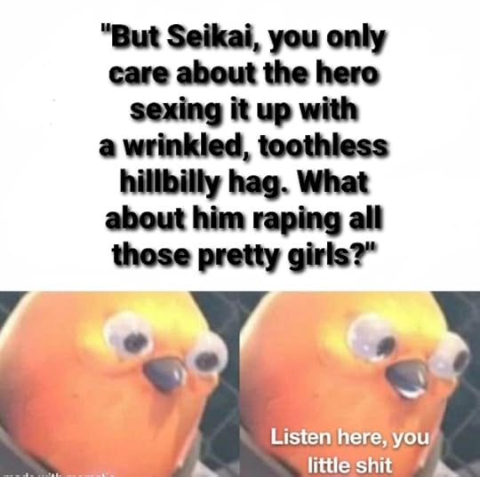 Hooo boy. I knew this was gonna be dark. I'm ok with dark (for the most part) if I know what to expect. I knew based on the summary and reviews that this book would have a rapist hero, but that the heroine would be super speshul to him. Which, depending on how it's written, I can be ok with in some dark novels. But no one prepared me for the horror of reading about saggy old hillbilly hag sex with the hero. Now, I know what you're probably thinking. Ok, ok, you're not wrong - I'll fully own up to it. While I'm not super keen on the serial rapist hero that finds his one special victim trope, what did offend my delicate sensibilities the most was the vivid descriptions of the hero in somewhat "consensual"-ish??? geriatric sex with a disgusting monster with yellowed and missing teeth. There wasn't really much warning to it and I'm not sure why I assumed this, but I thought this old lady was just gonna be his evil mentor or something. I was gagging when the hero got hard and was like, "hey I'm gonna be getting my dick wet tonight, whether it's with hillbilly hag or heroine!"