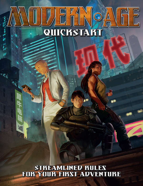 The Modern AGE Quickstart contains streamlined rules for Modern AGE, a game of contemporary adventure which uses the Adventure Game Engine found in Fantasy AGE and Blue Rose: The Age Roleplaying Game of Romantic Fantasy. Pre-set to Modern AGE’s Cinematic rules mode, it includes everything you need to run your first game except six-sided dice, writing materials, and your friends. Along with the rules, the Modern AGE Quickstart comes with ready to play characters and Burning Bright, a modern fantasy adventure in its own mini-setting.