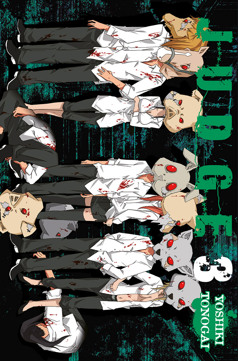 Summary (for the whole manga): Nine people wake up and find themselves in a building with animal masks on. Each of them have no idea how they ended up there. A stuffed doll then speaks and informs them that they are all in a game called "Judge" and that all of them are here because they committed a sin: pride, greed, envy, wrath, lust, gluttony, and sloth. At each round of the game, they will have to vote for a person who they think should be punished. At the end of each round, the person with the highest votes will die. At the end, only four people are allowed to leave the game.
