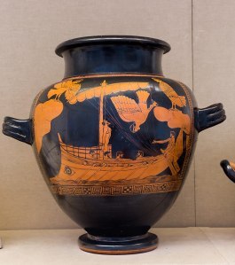 Odysseus and the Sirens, eponymous vase of the Siren Painter c.475BC (Wikipedia)After agonising over his very few clothing choices, David had gone with the old Levi's, the Doc Martens he'd bought with his first pay from the hotel and the green-and-black-checked shirt he hoped was more urban-trendy than loutish-slacker Westie. He fussed with the shirt, tucking it in, untucking, tucking, untucking. (p.21)