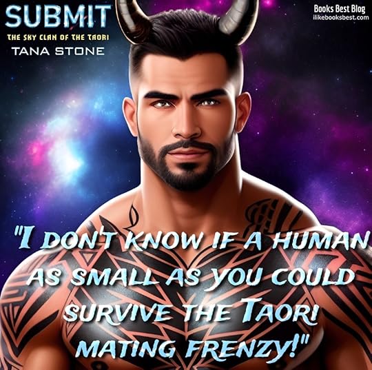 If you like alien abduction romance (as well as dominant and dangerous alien warriors with horns, tails, and bonus parts), you’ll love SUBMIT, the first book in Tana Stone’s sci-fi romance The Sky Clan of the Taori series. Each book can be read as a standalone, but you’ll enjoy them more if you read them in sequence.