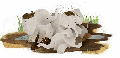 And where there’s water, of course there’s bath time. ’ “Yippee, it’s bath time – but our baths involve mud instead of water!”
