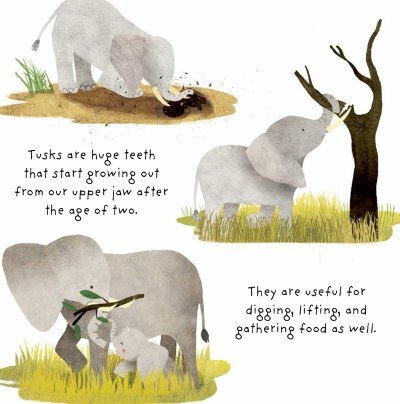 Everything you need to know about elephants is here. I wasn’t expecting a full fledged more than thirty two paged picture book but here we are with an amazing book with more pages with full of fun facts regarding the animal and its herd.