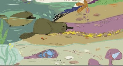The illustrations are visually stunning and full of detail, but I thought the platypuses were a bit too chonky compared to what they look like in real life. It does make them look very adorable though!
