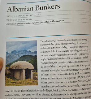 Places I will never get to and some I would love to see. What a cool book. In addition to the locations, including latitude and longitude, there is history and many photos. Here is an example below 👇 As you can see from the photo they estimate roughly 750,000 of these garden shed sized bunkers all over Albania. Many are completely abandoned but some have been repurposed as museums, storage for livestock feed and more. They are from the Cold War era.