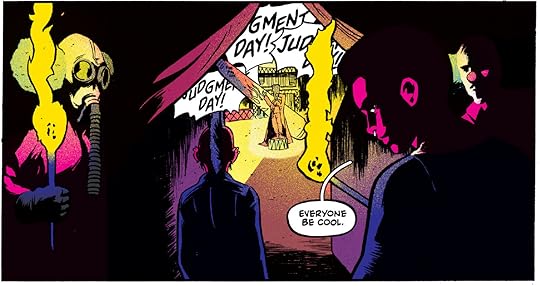 When I blind bought this graphic novel I had high hopes based on praise listed on the back cover. Upon opening it I was delighted at the artwork as well as the setting and thought 'wow this looks like it's gonna be right at my alley' but I was enormously disappointed. There's a lot of really interesting LOOKING characters in this story and they're doing a lot of mysterious type things but by the end of it I really didn't care about any of them as they were slaughtered or dispensed into different factions of this whole new post apocalyptic 'Warriors' meets 'The Running Man' like society.