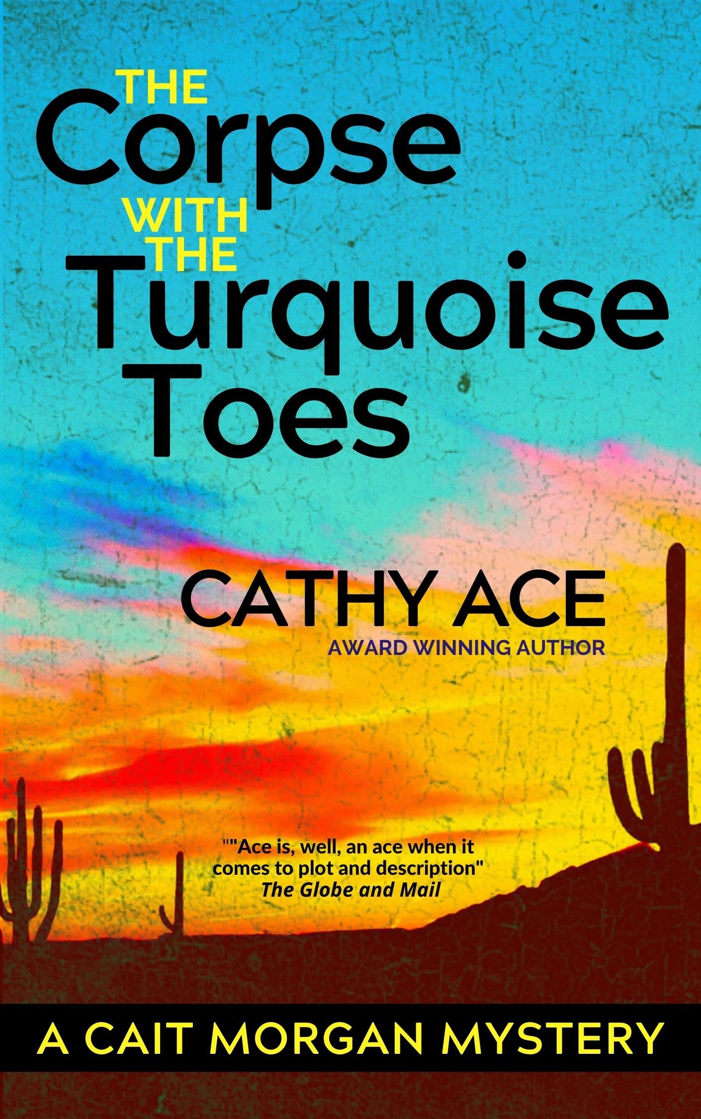 Criminal psychologist Cait Morgan and her retired homicide detective husband Bud Anderson are off to the Arizona desert in the 12th Cait Morgan book, The Corpse with the Turquoise Toes by Cathy Ace. After a rocky ride in the private plane provided by aging rock star Sammy Soul to bring them there, they arrive in Arizona with high anticipation of having a week’s vacation to relax. The trip is being paid for by Sammy Soul and his wife Suzie as an act of gratitude for Cait and Bud saving their daughter’s life some years before. Now that daughter, Serendipity, is a chef at the new restaurant at the equally new Desert Gem resort. The resort is the home base for the Faceting for Life movement, and Cait and Bud are the first and only guests before its opening to the public. Serendipity is hosting them and is eager to show off her restaurant.