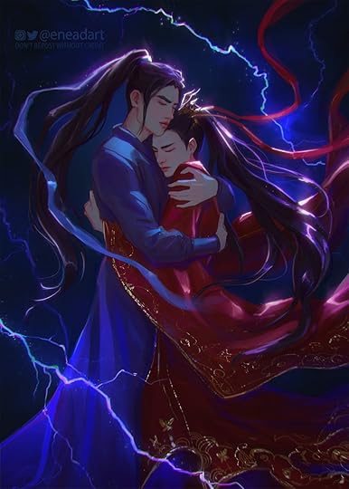 Between the flashed of lighting and crashing of thunder, he reached out without thinking and pulled Chu Wanning into a tight embrace. Frenzied heartbeats againts quivering soul. Chest to chest.