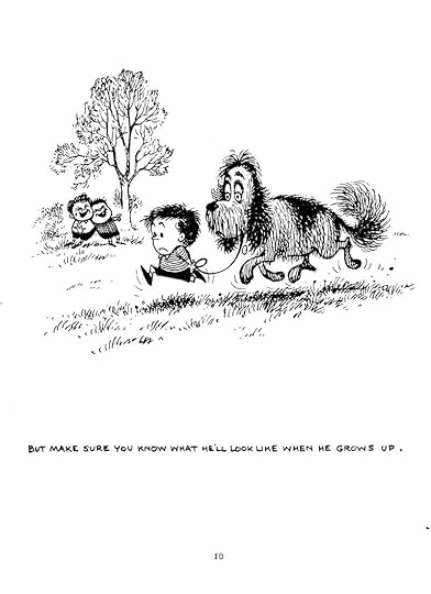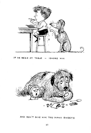 The basic set up, like that of many of his horse books, is of a how-to guide for owning a dog. The deadpan text often is in direct contrast with the image. Some are more successful than others.
