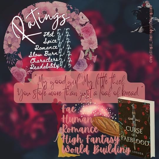 We follow Ember’s story after she loses her mother. She gets caught thieving in a village and her story takes off from there where she makes new friends and finds love with a brute warrior. So it’s an enemies to lovers along with found family troupe. There is also some smut along with praising. I found the magic of the Faeblood interesting, it’s different than other magic found in other stories.
