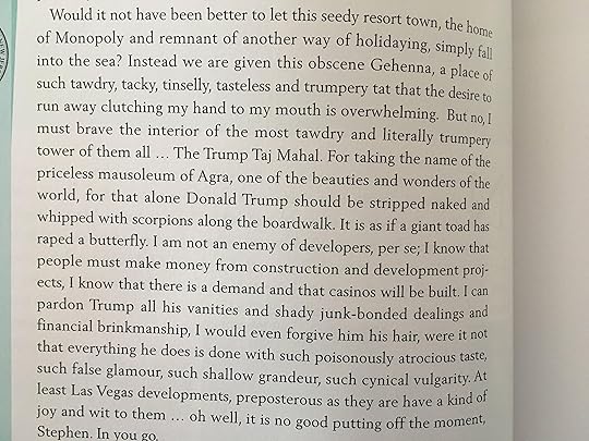 It reminded me a lot of the Michael Palin travel books, except with a bit more Fry and a little less Python.