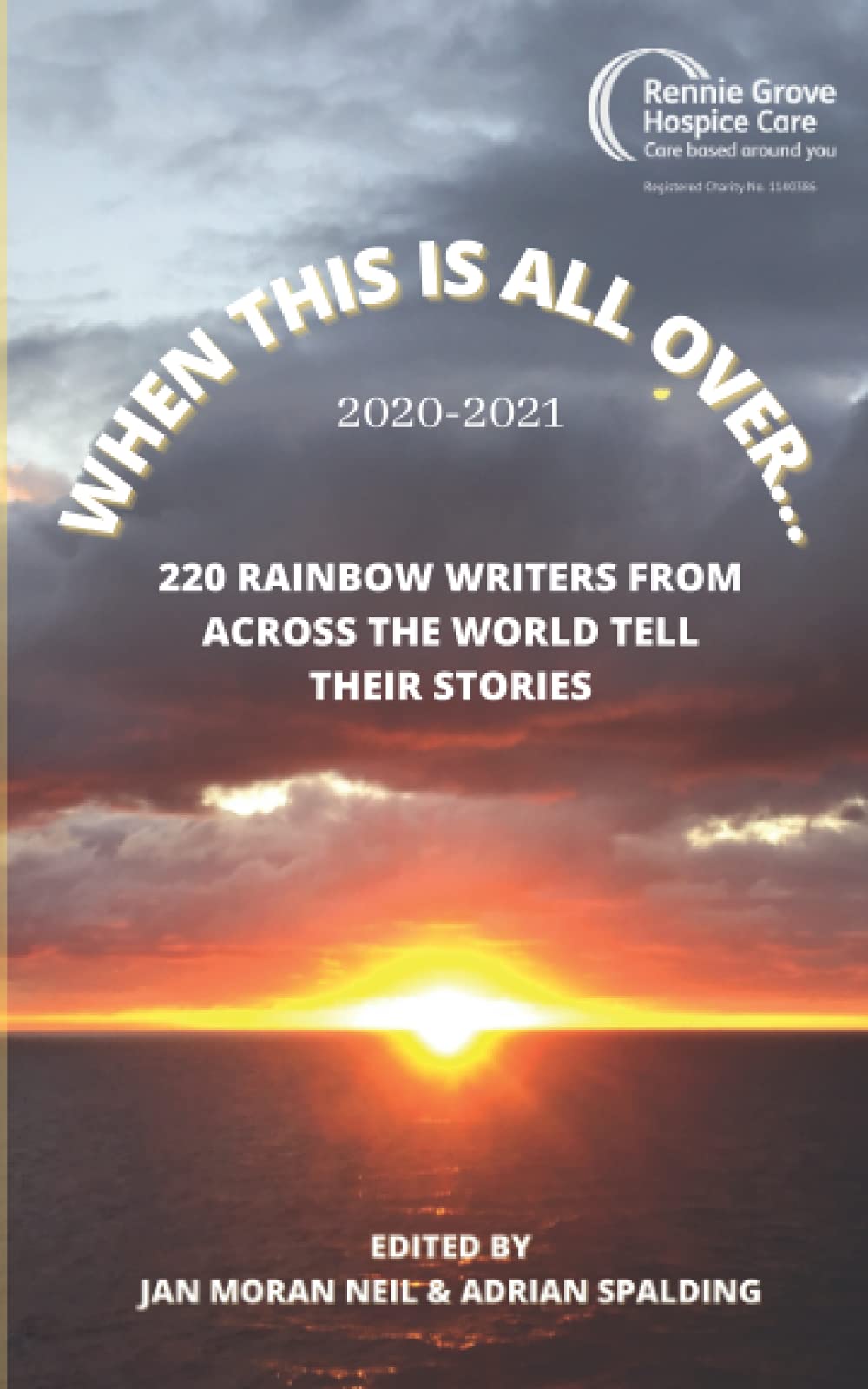 WHEN THIS IS ALL OVER … 2020-2021 is a charity anthology raising funds for the Rennie Grove Hospice Care. Home is where we had to stay and paradoxically was the very place that Covid-19 spread so plentifully. And yet the Rennie Grove nurses have kept on nursing for those with life-limiting illnesses in the home. And writers keep on writing. 220 Rainbow Writers across the world have donated their bite-sized stories about life during the Covid pandemic in no more than 220 words. This book includes words a BAFTA award-winning screenwriter; a founder member of Poets on the Underground and Signal Award winner; a Forward shortlisted poet; a renowned children’s TV writer; many published poets and authors as well as doctors, nurses and frontline workers. But people from New Zealand to Newcastle have had the courage to let their words sit alongside others who have writing certificates; people who have maybe not taken pen to paper or placed hands on laptops to tell their stories since they were at school. And indeed some of the writers are still at school and hoping the schools will remain open. Rainbow writers all. This gem of a time capsule tracks the four seasons of 2020-2021 in a wash of diverse emotions and diverse poetic and narrative forms from a diverse people. But the colour of hope is always yellow … Edited by authors Jan Moran Neil and Adrian Spalding and published by Creative Ink Publishing which has raised thousands of pounds for charities since its inception in 2000. All services given freely. All printing costs covered by Creative Ink Publishing. All proceeds to Rennie Grove Hospice Care. There are a few pages left blank so you can write your own pandemic story in whichever form you think fit. Keep it safe.